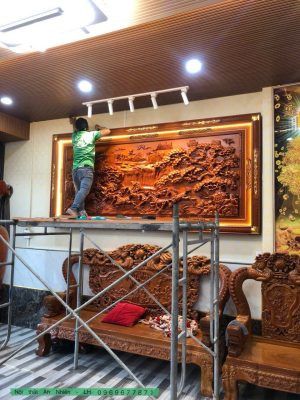 – Tên dự án: Dự án thi công tranh gỗ phòng khách – Địa điểm: An Giang – Đơn vị thi công: Công Ty TNHH Nội Thất Quảng Cáo An Nhiên